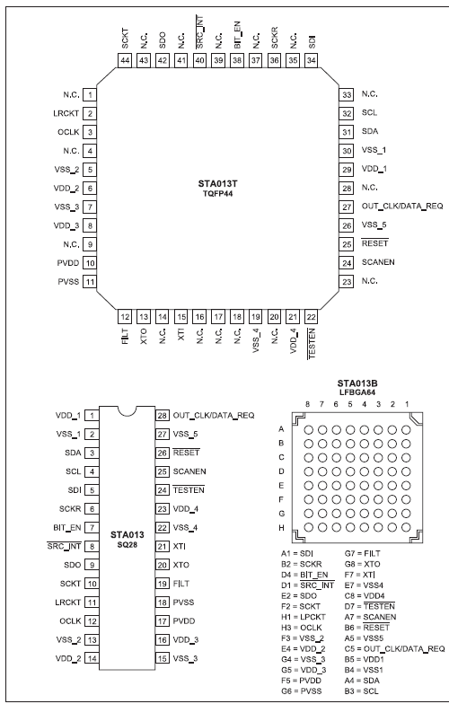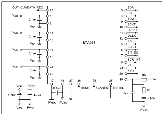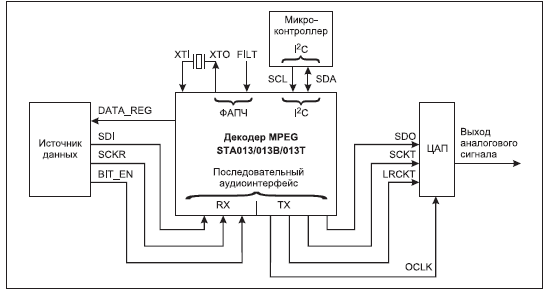 Микросхема STA013 представляет собой полностью интегрированный универсальный декодер потоков MPEG Layer III Audio спецификаций MPEG 1, MPEG 2 и MPEG 2.5