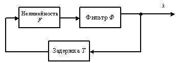 Рис.1. Структурная схема кольцевой автоколебательной схемы с запаздыванием