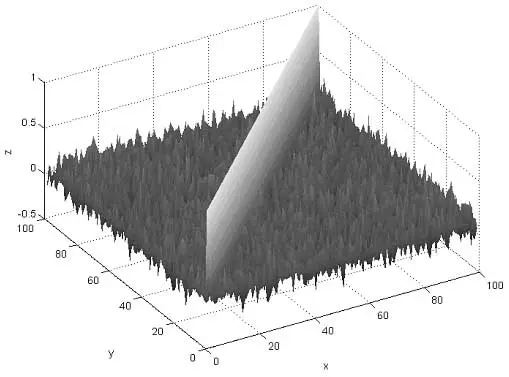 На рис. 10 изображена трехмерная фигура показывающая значения коэффициентов корреляции для многоуровневых ШХС [5]. Исследование проведено для ста ШХС длительностью 100 элементов в случае изменения начального состояния от 1 до 10,9 В шагом 0,1. Как следует из табличного представления матрицы корреляционных элементов максимальное значение коэффициента корреляции различных сигналов составляет 0,3052. Это значит, что статистические связи между различными реализациями хаос-процесса незначительны. При этом обратим внимание на простоту формирования ансамбля последовательностей: уменьшая шаг изменения начальных условий, можно значительно увеличить количество формируемых последовательностей, причем согласно проведенному моделированию корреляционные свойства сигналов не ухудшаются.