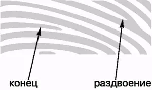 При опознании по деталям из образа извлекаются только специфические места, где найдена особенность (деталь). Обычно это либо окончание гребня, либо его раздвоение (см. рис. 2). Содержание шаблона в этом случае составляют относительные координаты и сведения об ориентации детали. Распознающий алгоритм отыскивает и сравнивает между собой соответствующие детали. Ни поворот отпечатка пальца, ни его параллельный перенос (сдвиг) не влияют на функционирование системы, поскольку алгоритм работает с относительными величинами. Размер шаблона в этом случае уменьшается примерно до 300 байт. Обработка такого небольшого количества данных возможна даже в системах с невысокой скоростью процессора и ограниченной памятью.