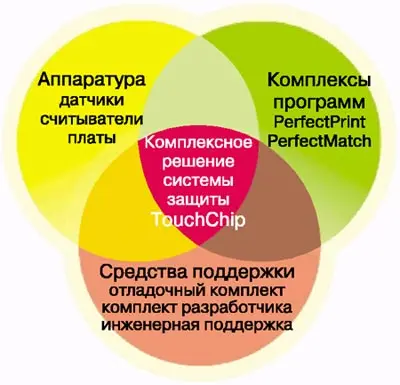 Компания STMicroelectronics предлагает ST TouchChip - биометрическую подсистему защиты "под ключ", которую можно легко внедрить в изделия общего и частного применения (см. рис. 3). TouchChip, PerfectPrint и PerfectMatch - это современные технологии, обеспечивающие полный диапазон типичных биометрических системных функций: снятие отпечатка пальца, оптимизацию образа и принятие решения о доступе. TouchChip - кремниевый датчик отпечатка пальца - фиксирует изображения отпечатка пальца. Он основан на патентованной технологии компании - активном емкостном пиксел-датчике, обеспечивающем высокое отношение сигнал/шум. Комплекс программ PerfectPrint управляет датчиком с целью оптимизации образа отпечатка пальца в зависимости от условий окружающей среды или типа кожи. PerfectMatch - набор программных алгоритмов, которые решают две существенные биометрические задачи: выделение шаблонов из образа отпечатка пальца и распознавание соответствия отпечатков живых пальцев предварительно сохраненным образам.