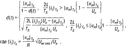 Анализ данного условия показывает, что переход из режима непрерывного тока в разрывный зависит только от d при неизменных параметрах схемы, таких как выходное напряжение и L.