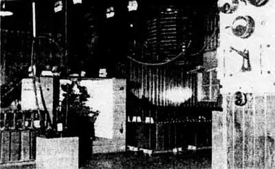 До сих пор точно неизвестна высокочастотная мощность в антенне, которую обеспечивал передатчик, расположенный в Poldhu. Измерение высокочастотной мощности, особенно ее больших уровней, даже в настоящее время представляет сложную задачу. В начале же XX в. точно измерить мощность передатчика было просто невозможно, и определяли ее приблизительно на основании показаний многих приборов. Конструктор передатчика в Poldhu А. Флемминг оценивал его мощность в 25 кВт. Следует подчеркнуть, что Флемминг в то время был одним из опытнейших конструкторов передатчиков в мире, и его оценка заслуживает доверия. На рис.1 показан выходной искровой разрядник этого передатчика. Как видно из фотографии, разрядник окружен кирпичной стеной. Это сделано в целях пожарной безопасности, поскольку при работе передатчика искры разлетались далеко от разрядника.