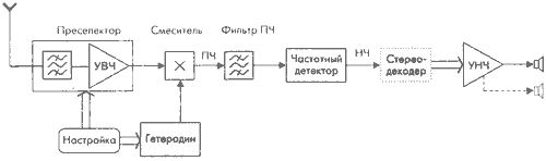 Рис.2. Обобщенная блок-схема супергетеродинного ЧМ-приемника.