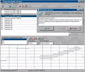 Для модификации имеющихся стандартных сигналов и создания новых используется редактор сигналов. Новые сигналы могут создаваться путем комбинации стандартных элементов. Окно редактора приведено на рис. 3.