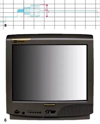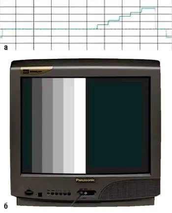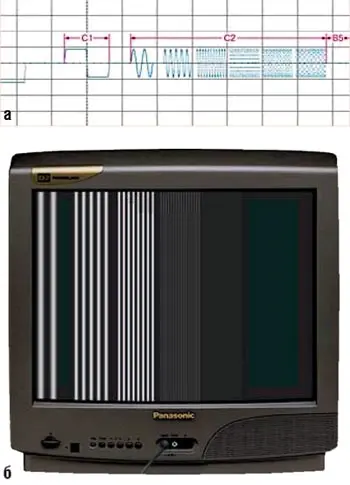 Рис. 5. Измерительный сигнал 5 по ГОСТ 18471-83 (а - форма сигнала; б - вид на экране телевизора)