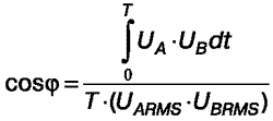 где: UA, UB - мгновенное значение сигнала по каналу А, В; UARMS, UBRMS - среднеквадратическое значение сигнала по каналу А, В; Т - длительность периода измеряемого сигнала.
