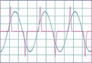 Если устройство (ЧЯ) кардинально изменяет форму ИС, можно попытаться определить величину сдвига фаз на основе формулы мощности потерь. Здесь слово "определить" надо понимать не только как "найти", но и как "дать определение". Действительно, что считать сдвигом фаз для сигналов, изображенных на рис. 9? А между тем этот рисунок - иллюстрация к реальной задаче определения сдвига фаз между сигналами напряжения и тока при измерении параметров петли гистерезиса магнитопроводов.