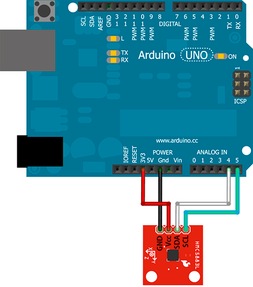 Специально для микросхем HMC5883L продаются готовые печатные платы с обвязкой (этот путь будет наиболее простым для проектов "на коленке" или для использования с программируемыми микроконтроллерами).