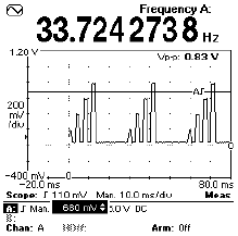 Измеряет больше параметров сигнала, чем его «одноклассники». Например: частоту сигнала, частоту заполнения, соотношение частот, период, ширину импульса, фронт/срез, временной сдвиг, сдвиг фаз, скважность, напряжение постоянного тока, действующее среднеквадратическое значение переменного напряжения с постоянной составляющей, максимальное и минимальное значение напряжения, размах, дрожание фазы, общее количество импульсов и число оборотов в минуту.