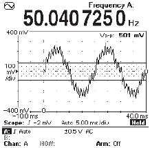 Функция отображения формы сигналаОтображение формы периодических входных сигналов. Для верификации большинства основных видов входного сигнала и корректной синхронизации не требуется применения отдельного осциллографа. Это применимо для входов A и B как в режиме измерения частоты и времени, так и в режиме вольтметра. Однако, для более подробного визуального отображения характеристик комплексного, динамически изменяющегося или низкоуровневого сигнала потребуется полнофункциональный осциллограф.