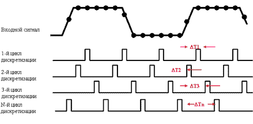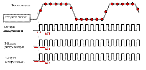 Рис. 4. Схематический рисунок отображения сигнала цифровым осциллографом
