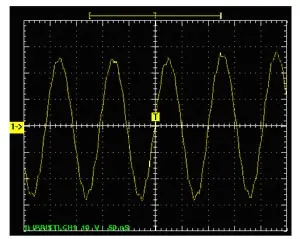 Демонстрируя возможность измерения однократных сигналов обратимся к рис 9. и 10. Рис 9 представляет собой сигнал частотой 30 МГц на однократной развертке - отчетливо видны существенные искажения сигнала. На рис 10 сигнал частотой 5 МГц - существенные искажения, как видно отсутствуют.