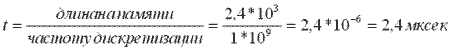 , (2)где Fэчд - эквивалентная частота дискретизации, 20 - число делений на экран, для расчета времени длительности развертки на весь экран (с учетом то, что память 500 бит, т.е. в два раза больше разрешения ЖКИ 240, т.е. "длина" сигнала в два раза больше "длинны" экрана).