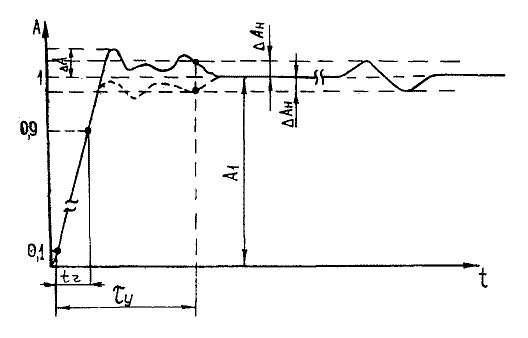 Второстепенным параметром связанным с полосой пропускания является время нарастания - это время в течении которого, по экрану осциллографа, импульс с абсолютно крутым фронтом, изменяется от уровня 0,1 до уровня 0,9. Полоса пропускания связана с временем нарастания формулой: