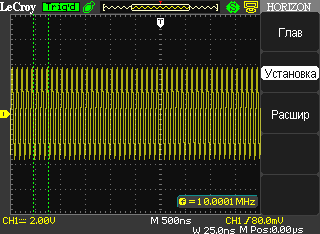 Наличие режима сбора данных с включённой интерполяцией Sinx/(x) позволяет значительно увеличить достоверность отображения сигнала при частотах сигнала сопоставимых с частотой дискретизации.