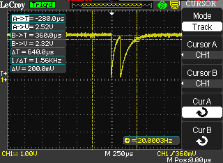 Рисунок 5. Пример курсорных измерений в режиме слежения