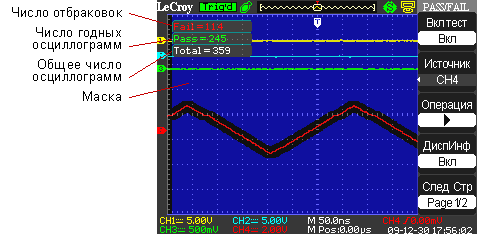Рисунок 8. Работа осциллографа в режиме тестирования по маске