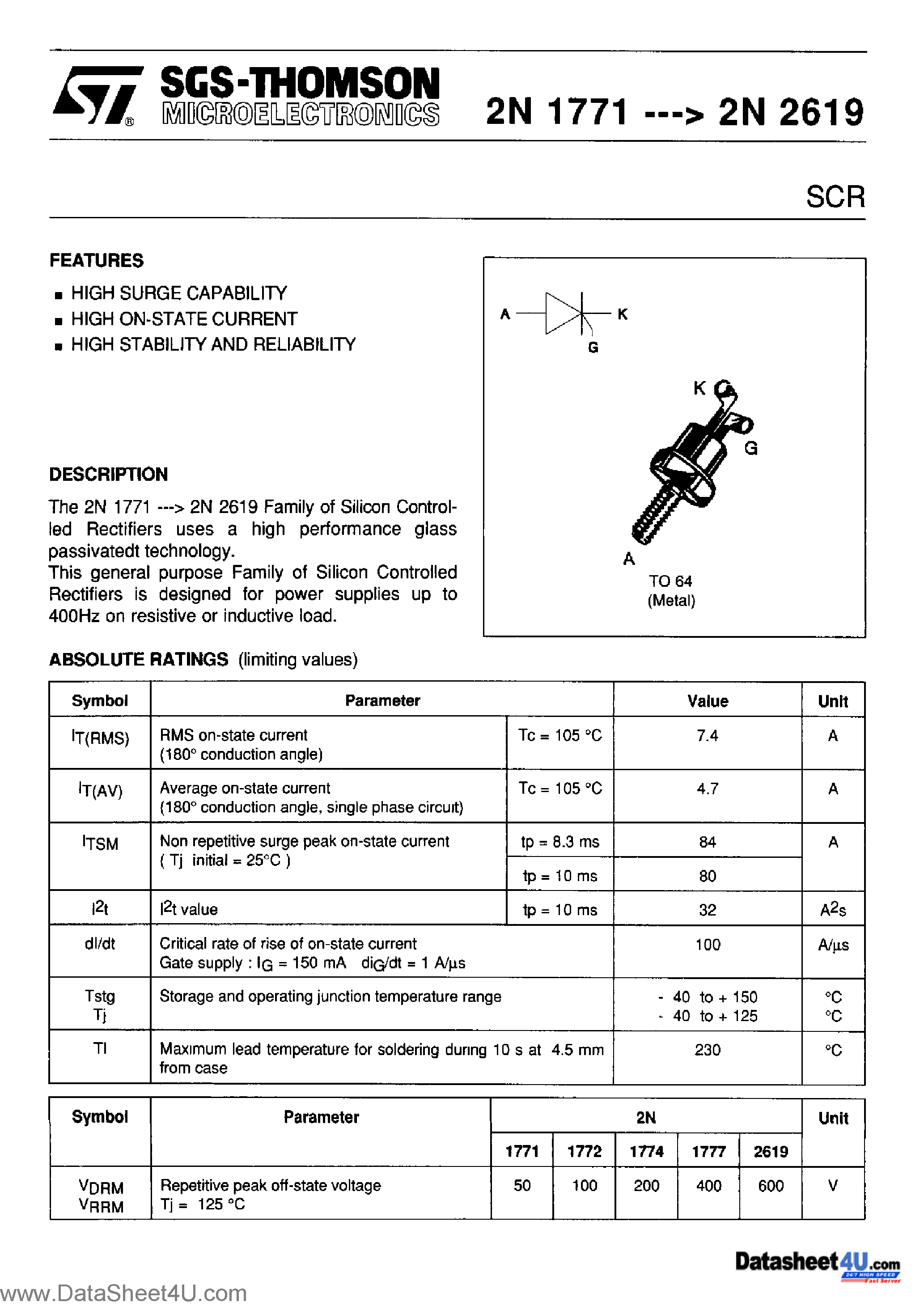 Даташиты (Datasheets 2N1771) электронных компонентов
