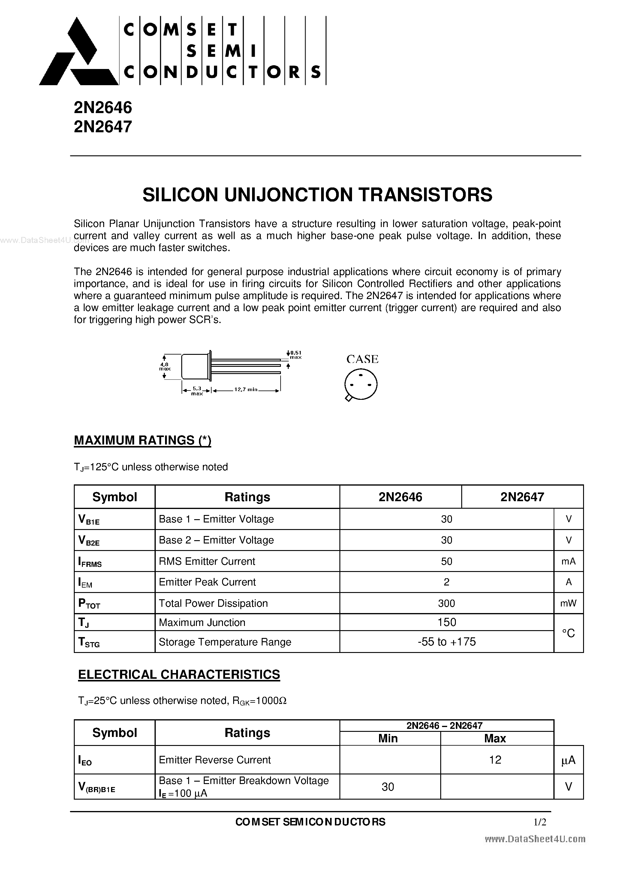 2N2646-(2N2646 / 2N2647) SILICON UNIJONCTION TRANSISTORS