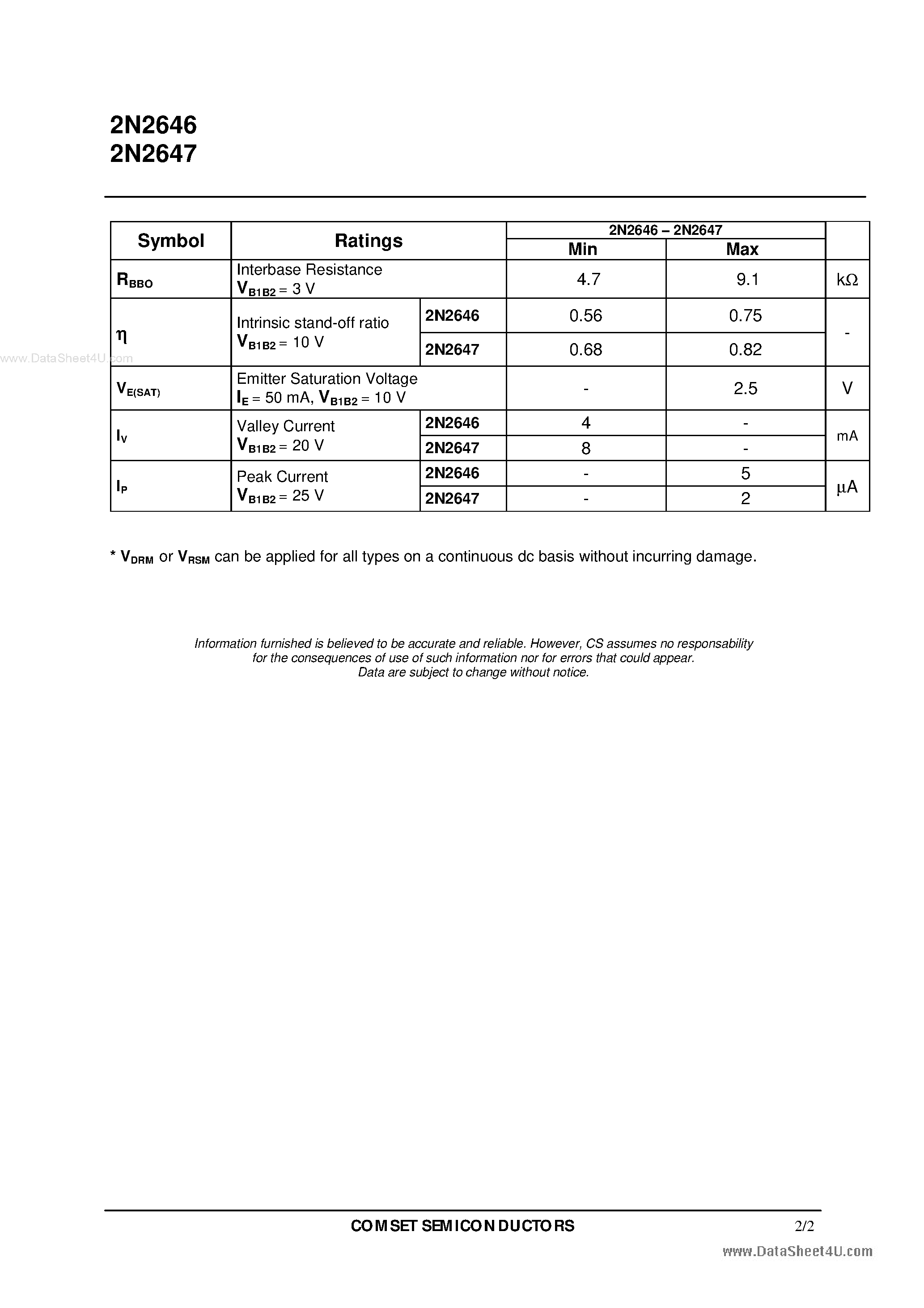 Даташиты (Datasheets 2N2646) электронных компонентов