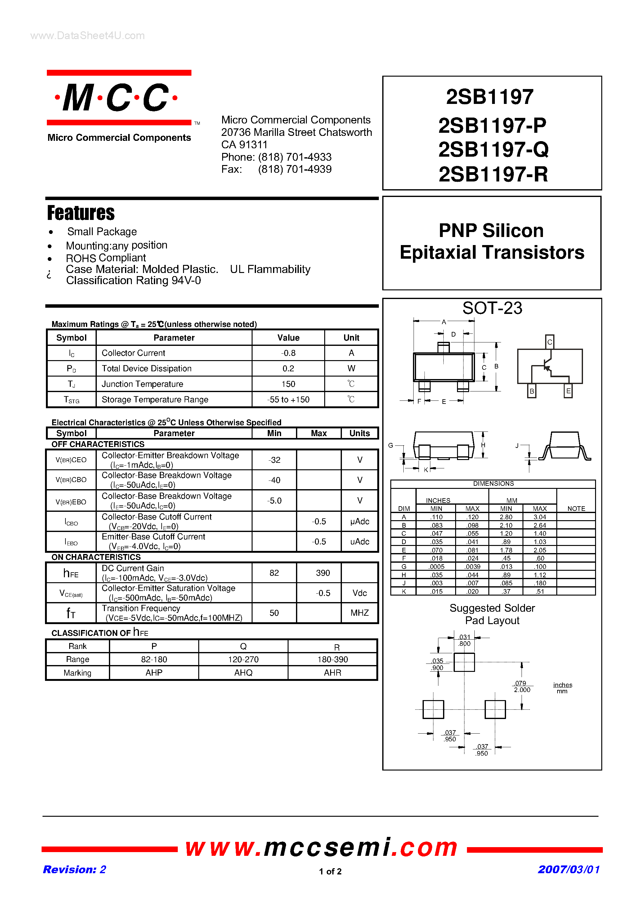 Даташиты (Datasheets 2SB1197) электронных компонентов