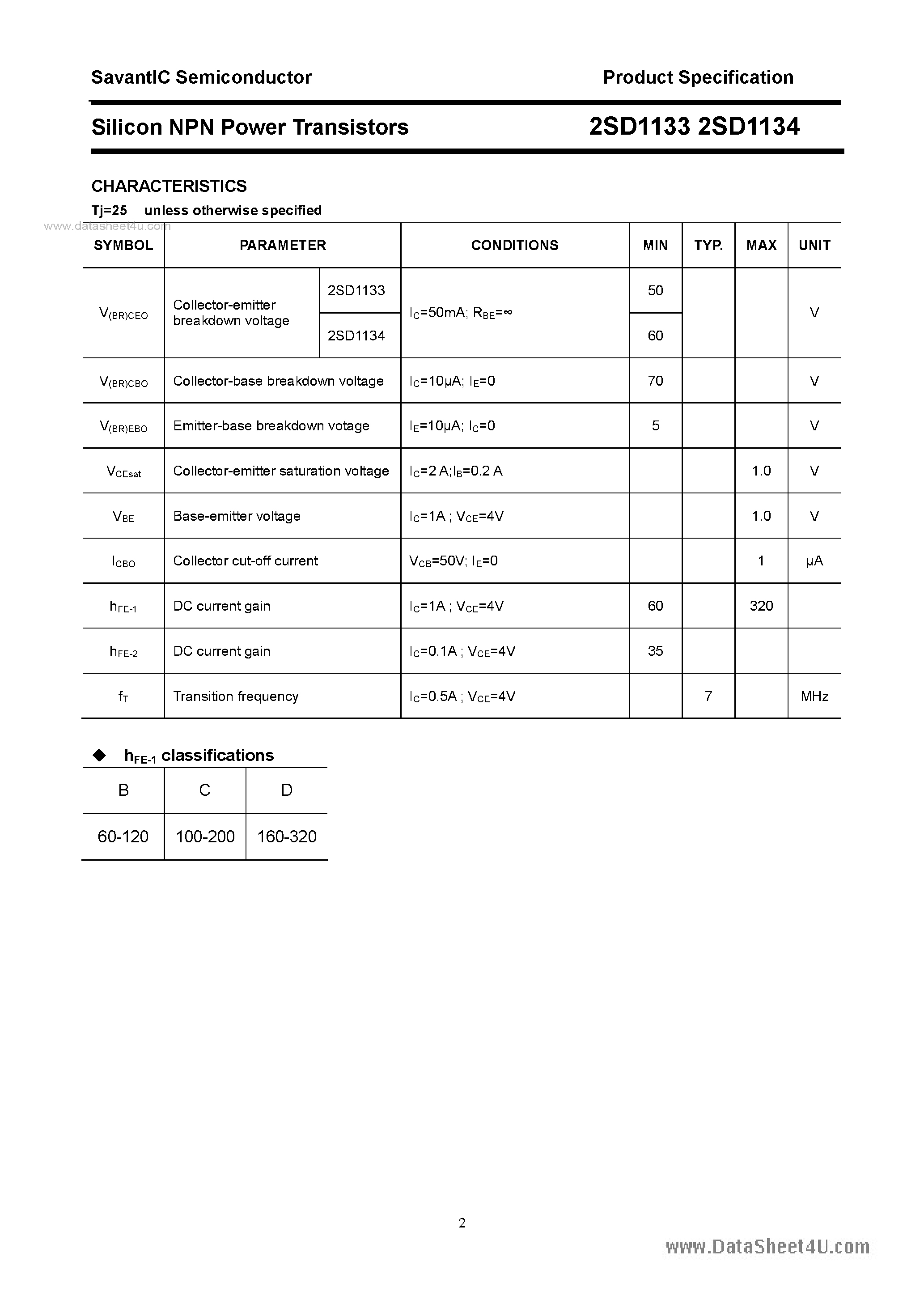 2SD1133-(2SD1133 / 2SD1134) SILICON POWER TRANSISTOR