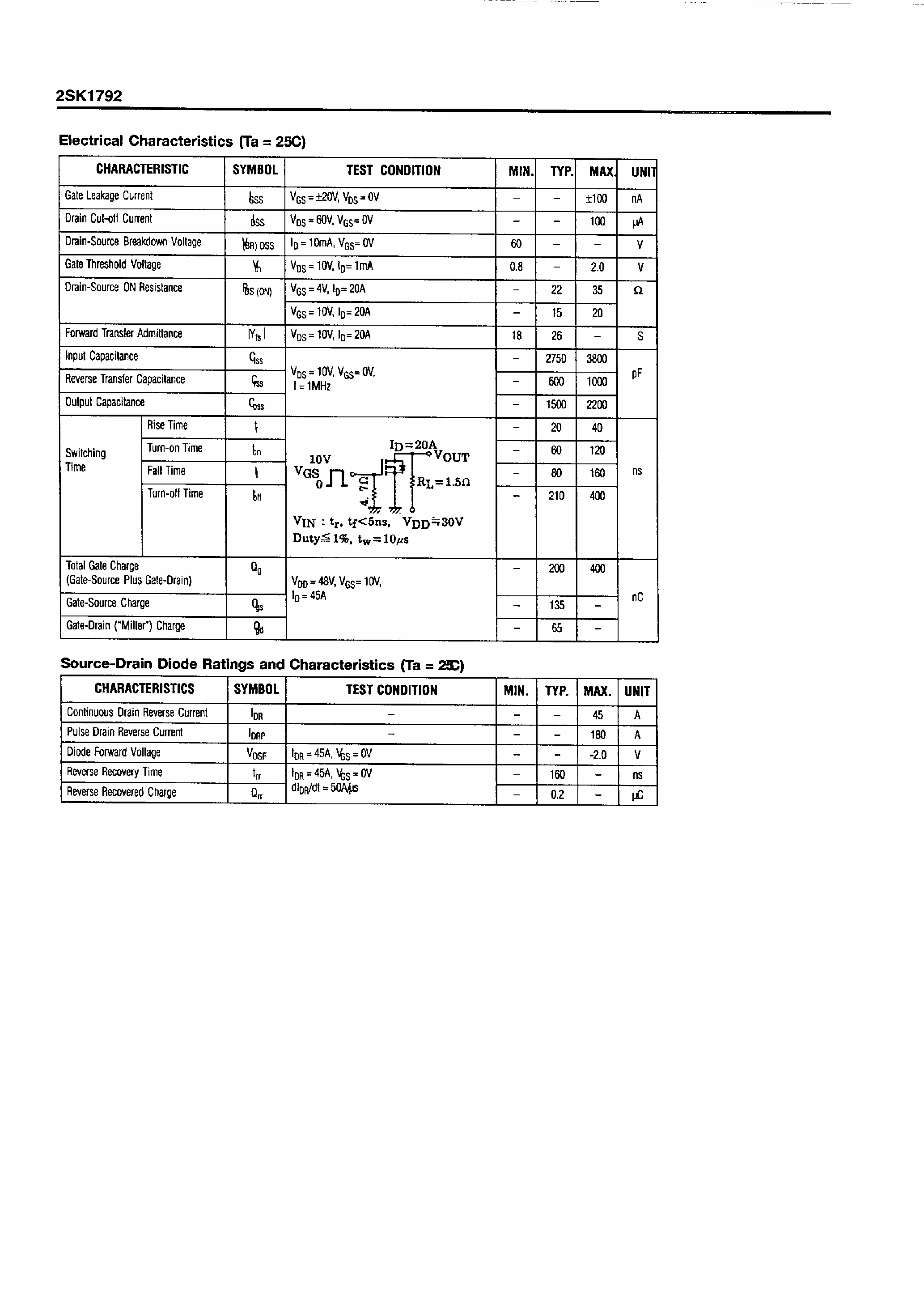 Даташиты (Datasheets 2SK1792) электронных компонентов