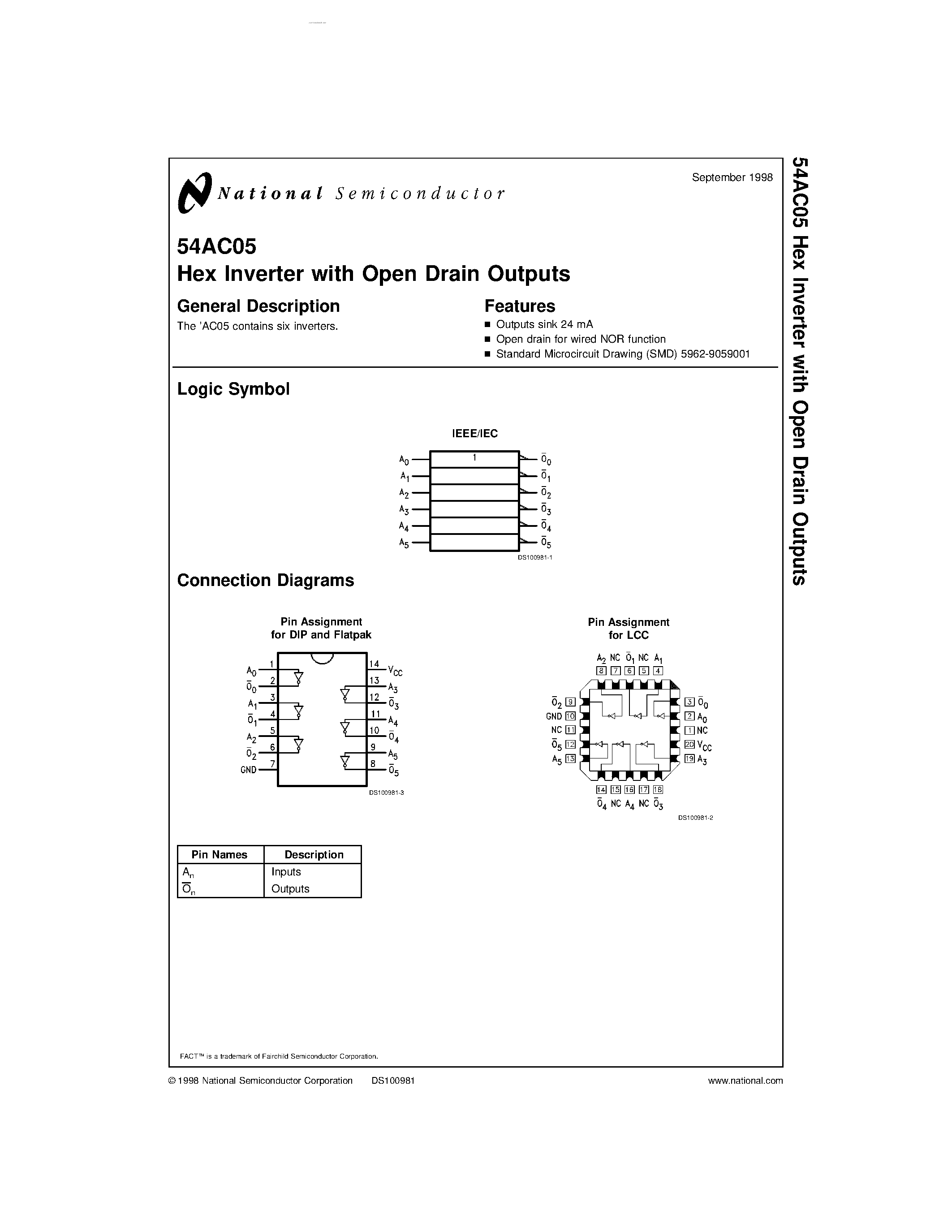 Даташиты (Datasheets 54AC05) электронных компонентов