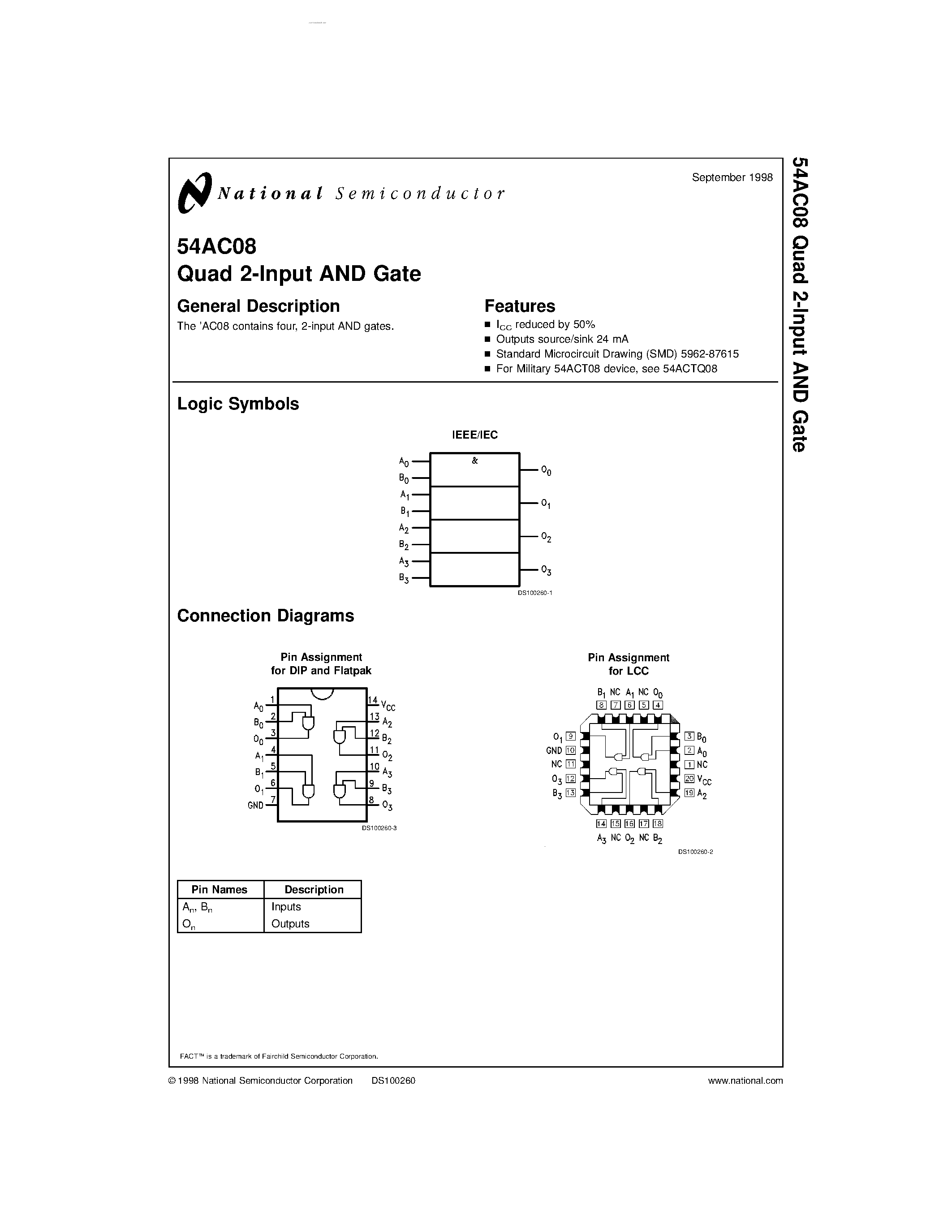 Даташиты (Datasheets 54AC08) электронных компонентов