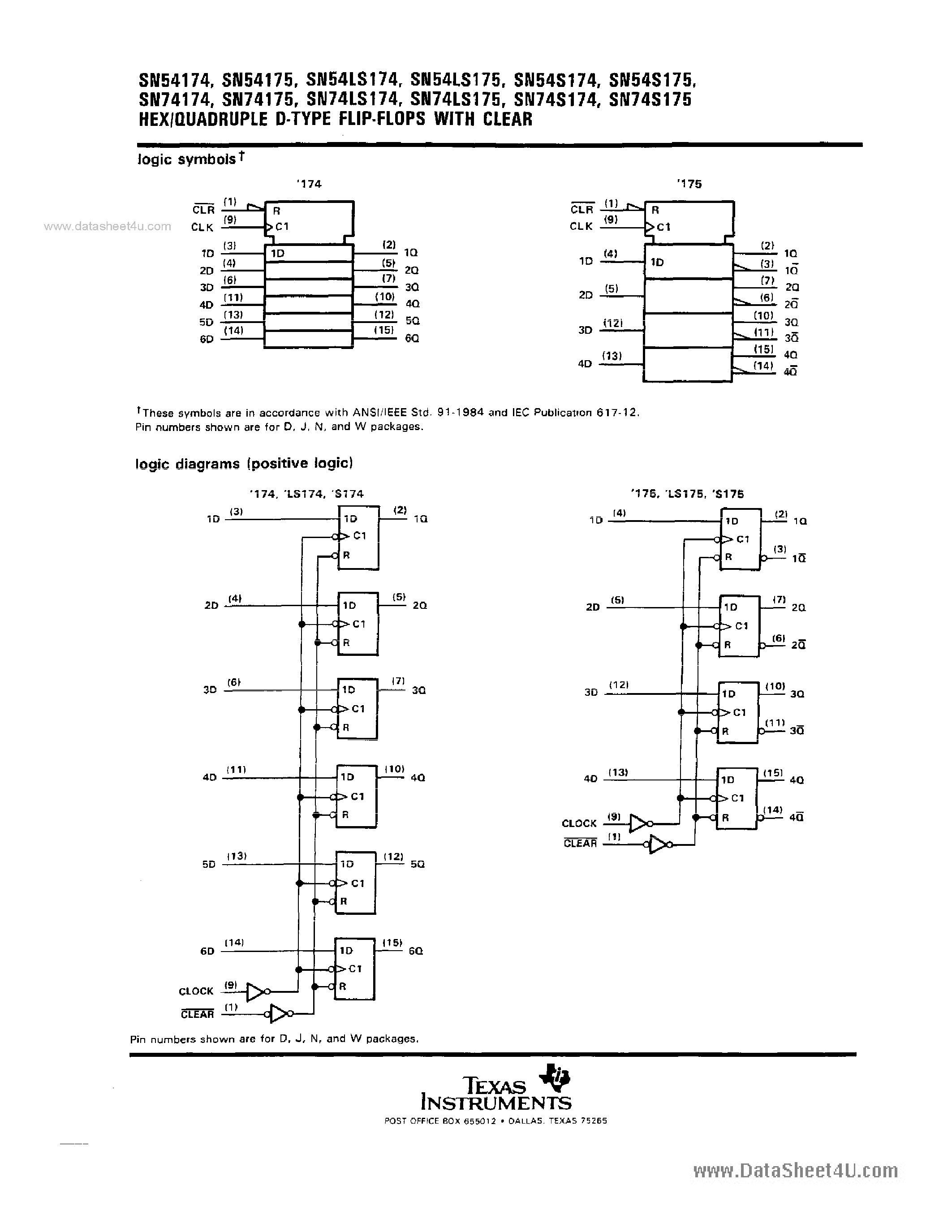 Даташиты (Datasheets 74175) электронных компонентов