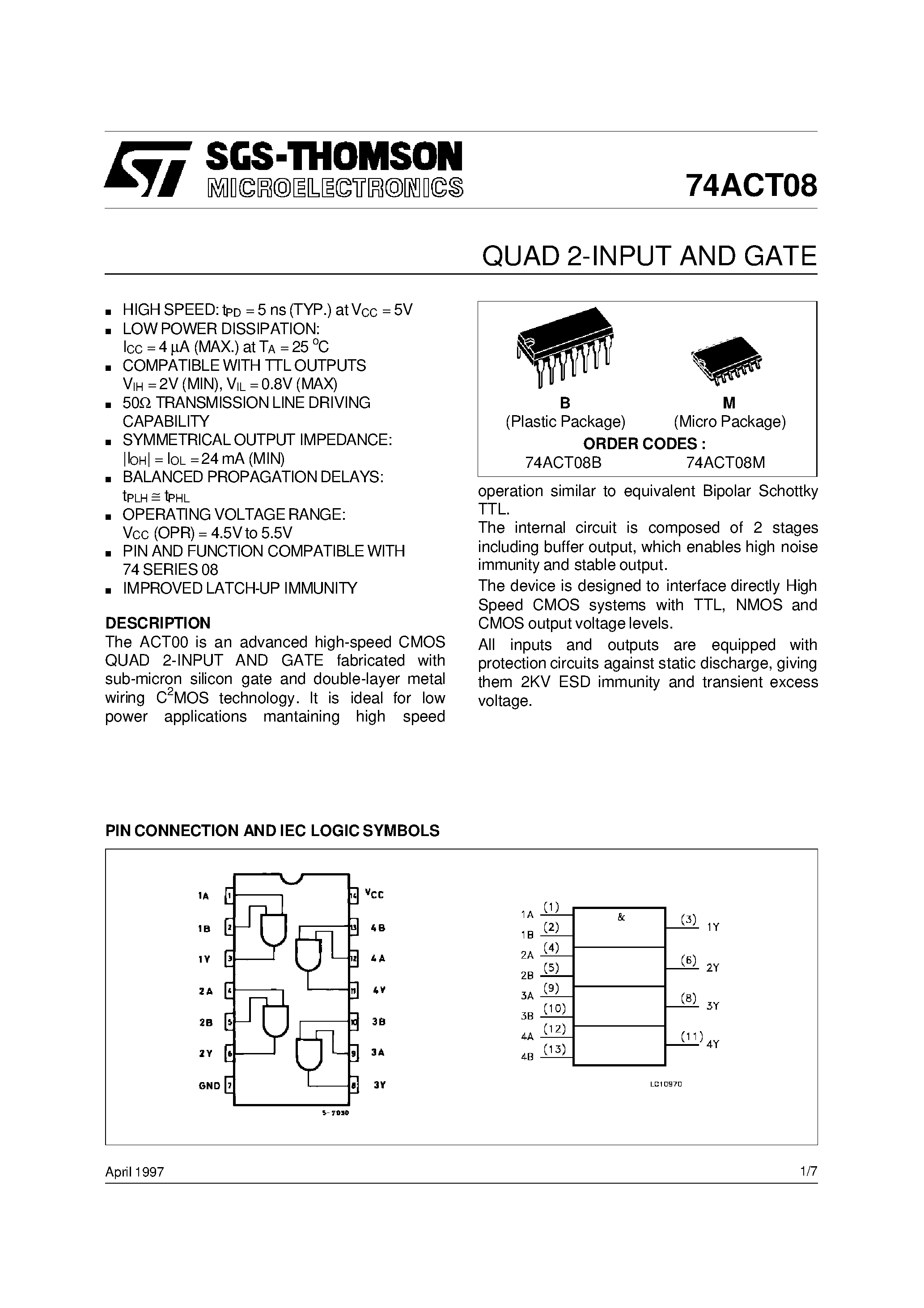 74ACT08B-QUAD 2-INPUT AND GATE