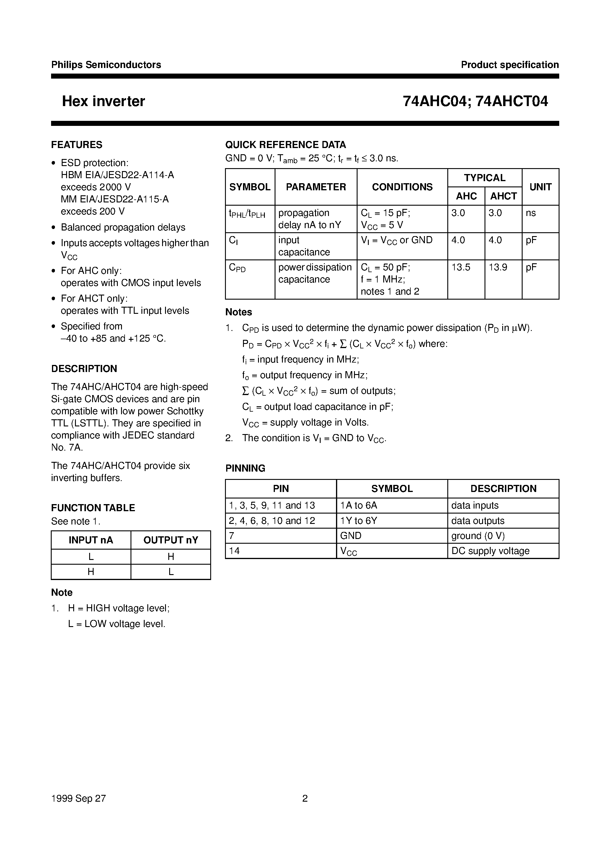 Даташиты (Datasheets 74AHC04PW) электронных компонентов