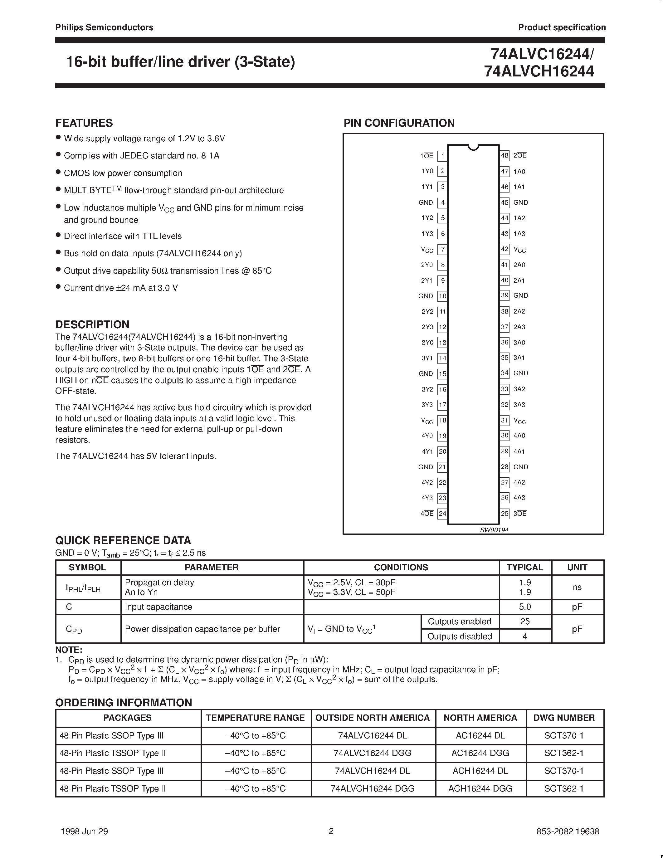 Даташиты (Datasheets 74ALVC16244DGG) электронных компонентов