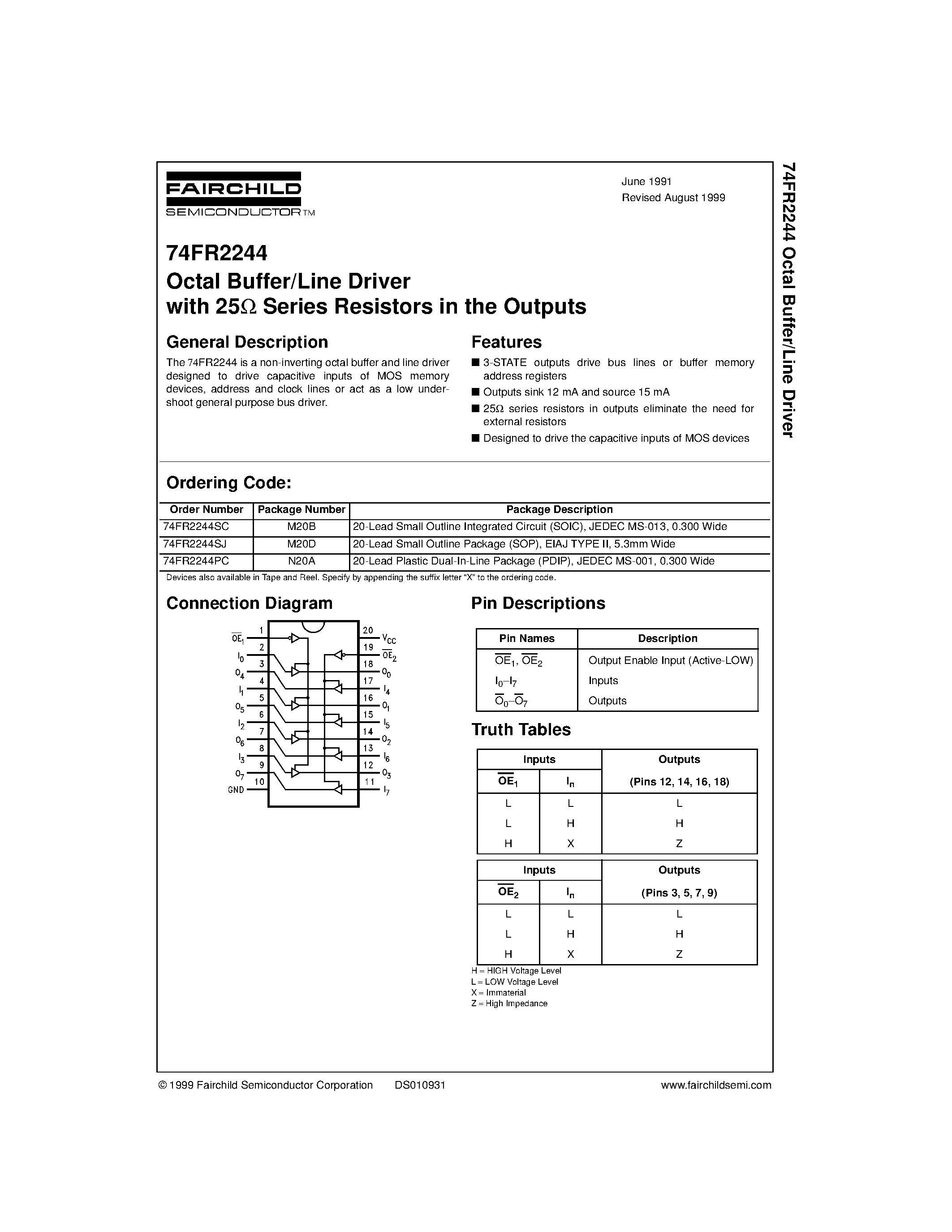 74FR2244SJ-Octal Buffer/Line Driver with 25 Series Resistors in the Outputs