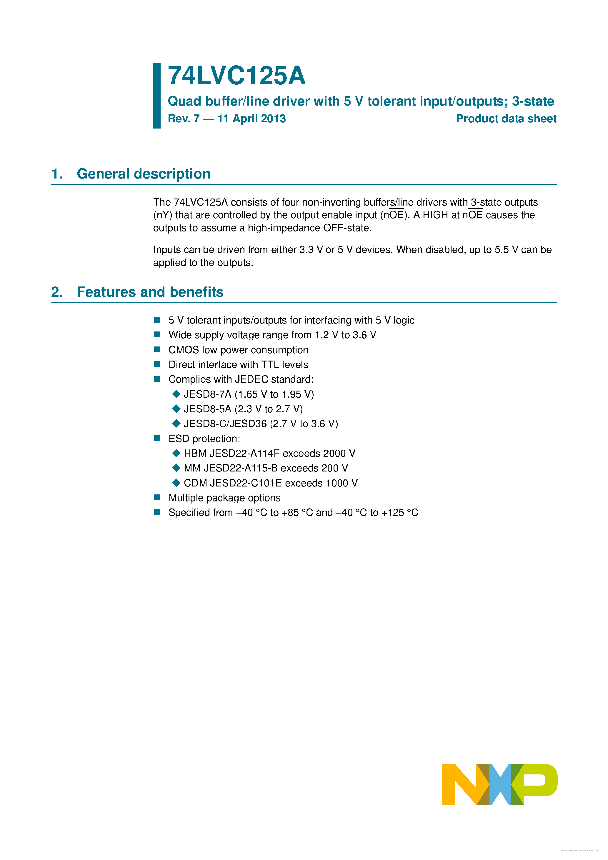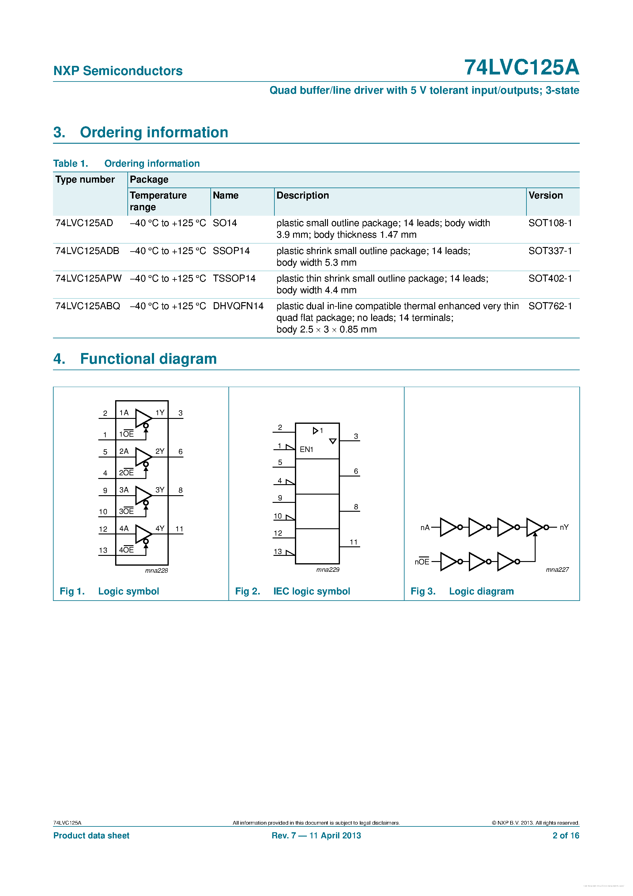 Даташиты (Datasheets 74LVC125A) электронных компонентов