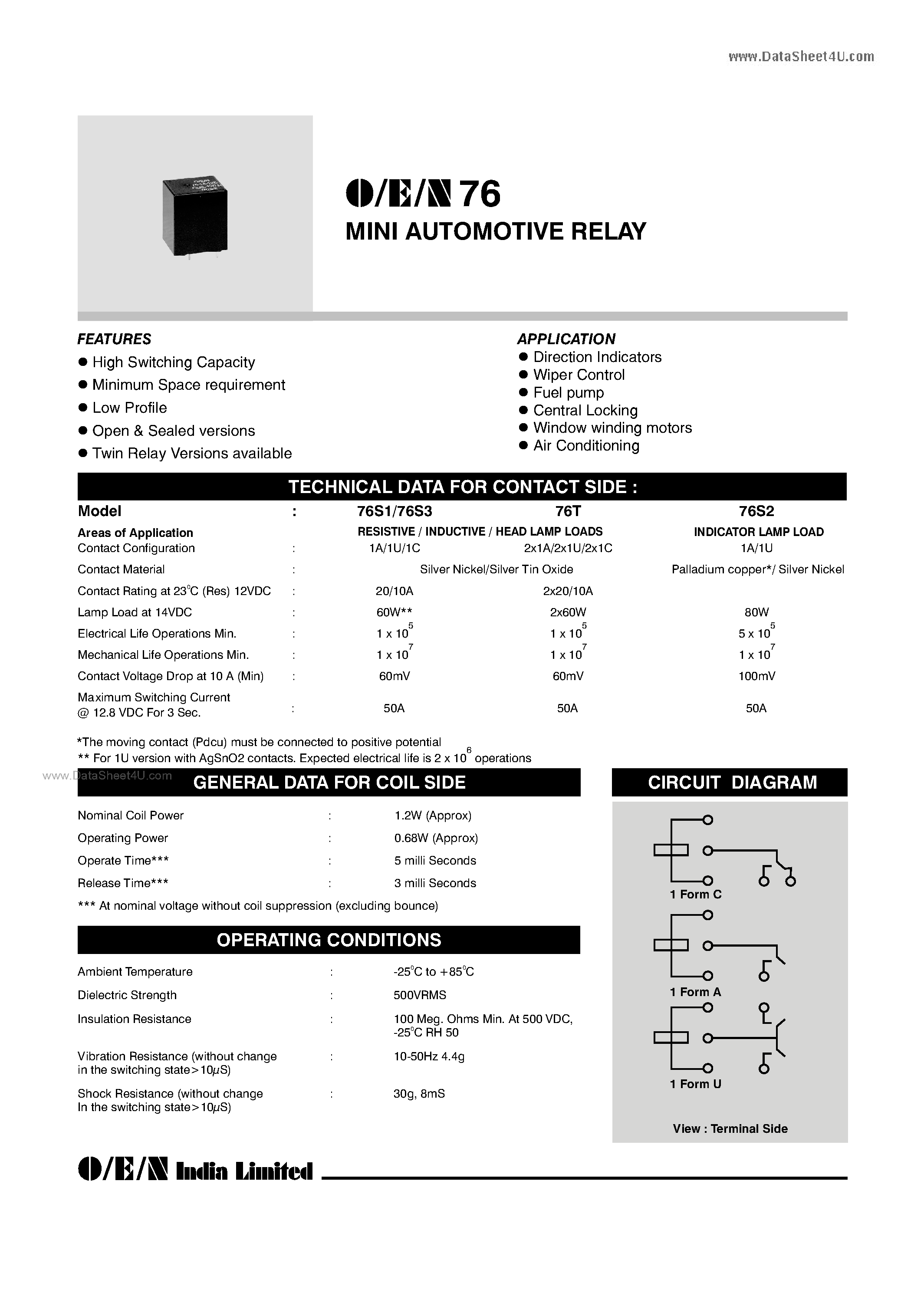 Даташиты (Datasheets 76S1-12-xxxxxx) электронных компонентов