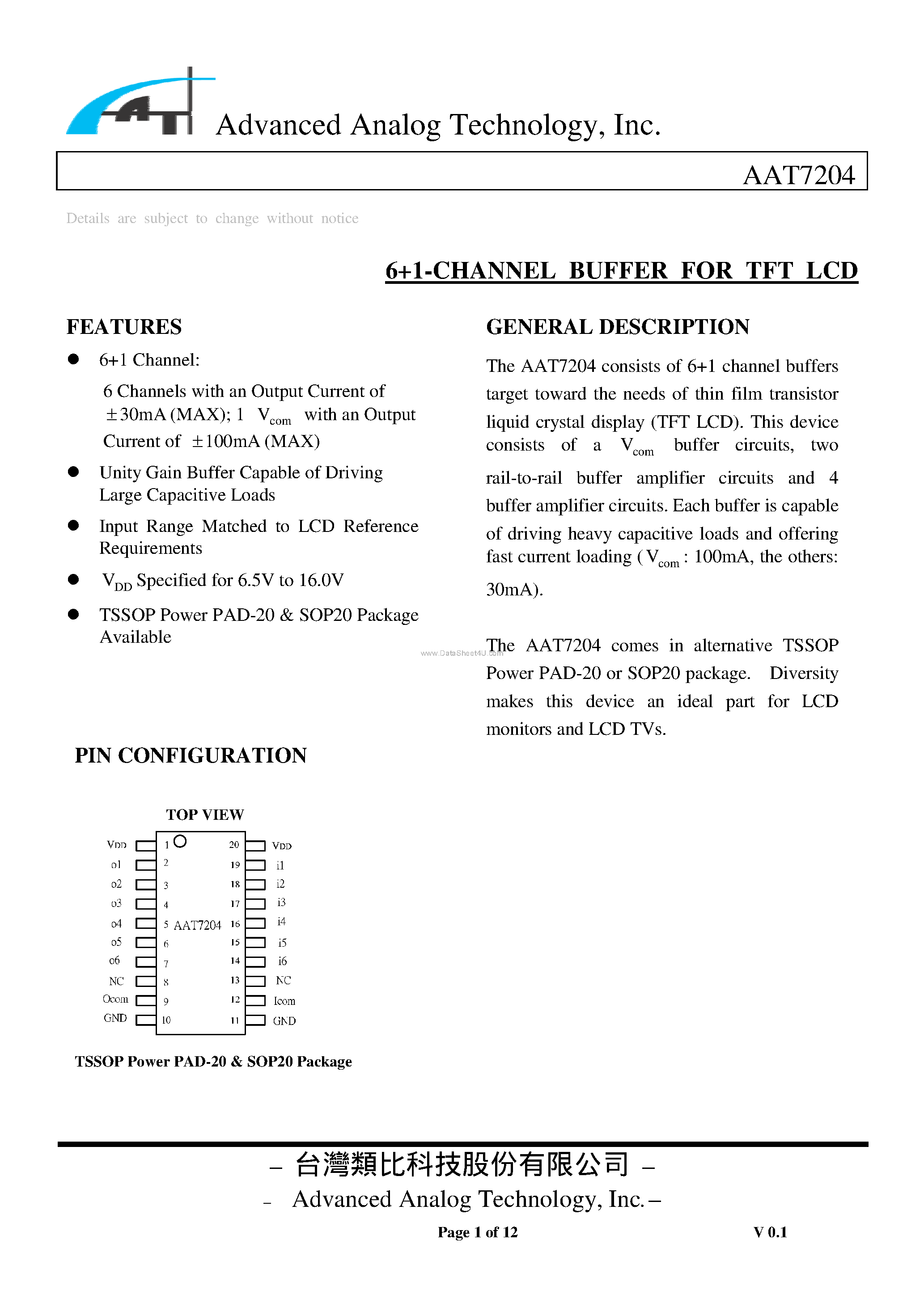 Даташиты (Datasheets AAT7204) электронных компонентов