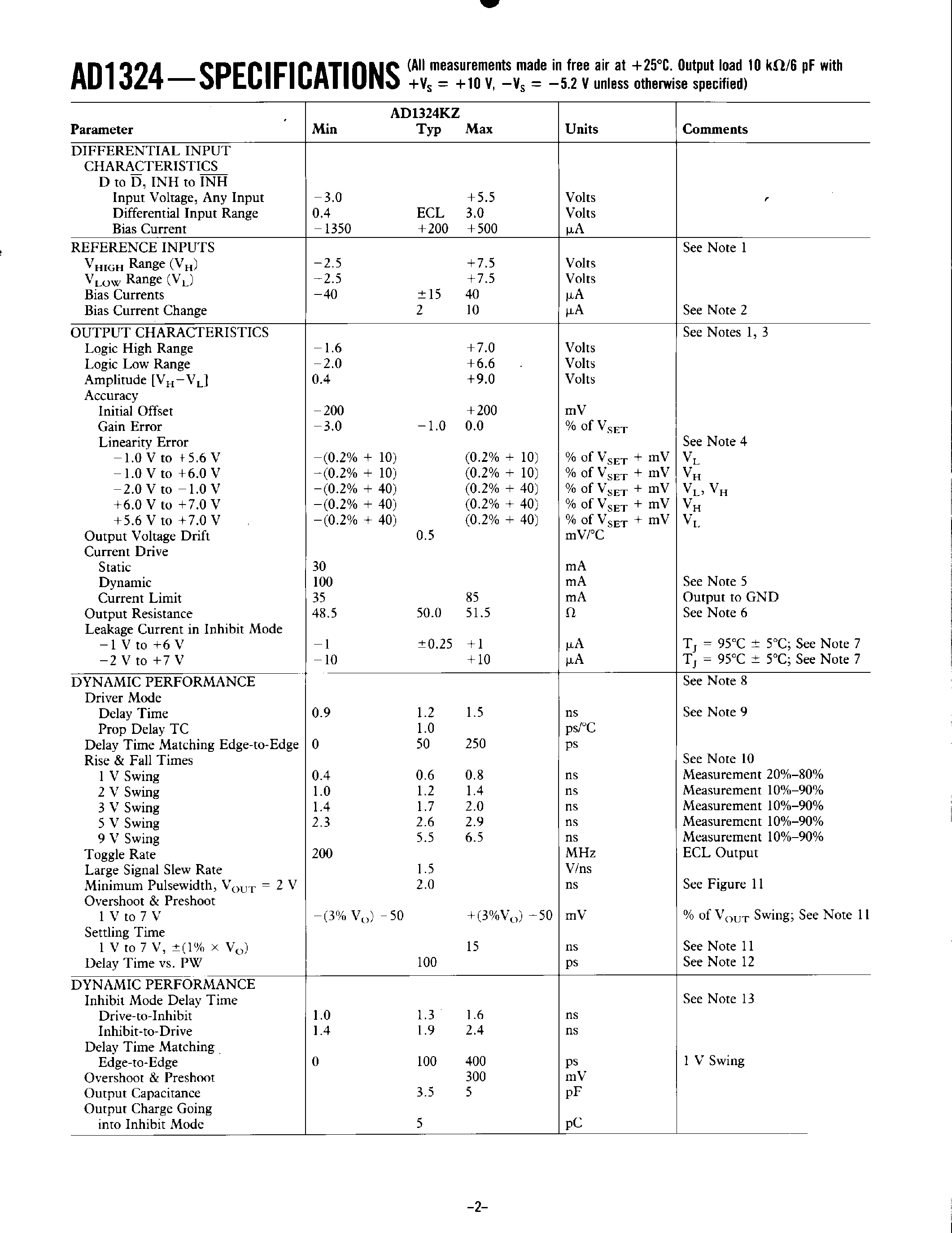 AD1324KZ-Ultrahigh Speed Pin Driver with Inhibit Mode