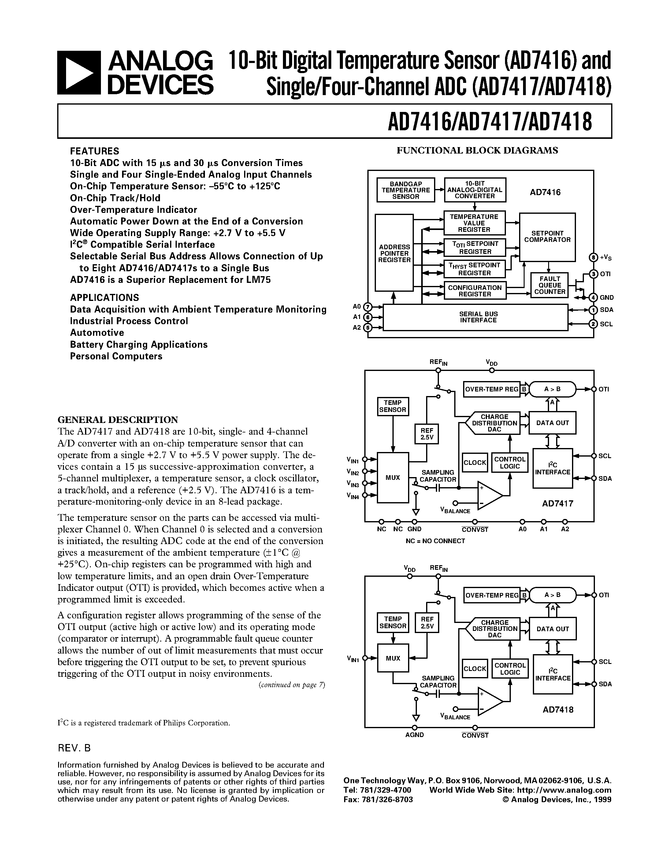 AD7416AR-10-Bit Digital Temperature Sensor (AD7416) and Single/Four-Channel ADC (AD7417/AD7418)