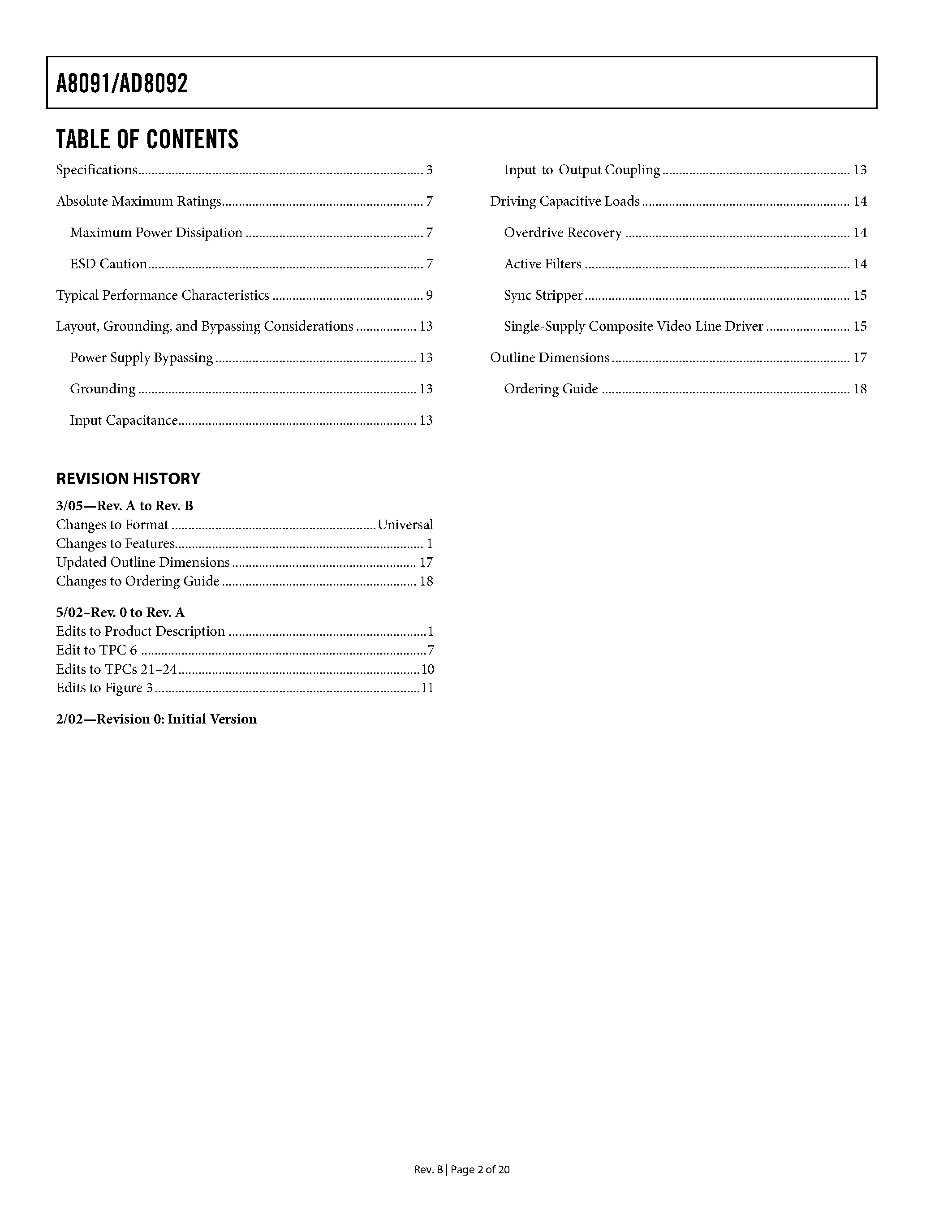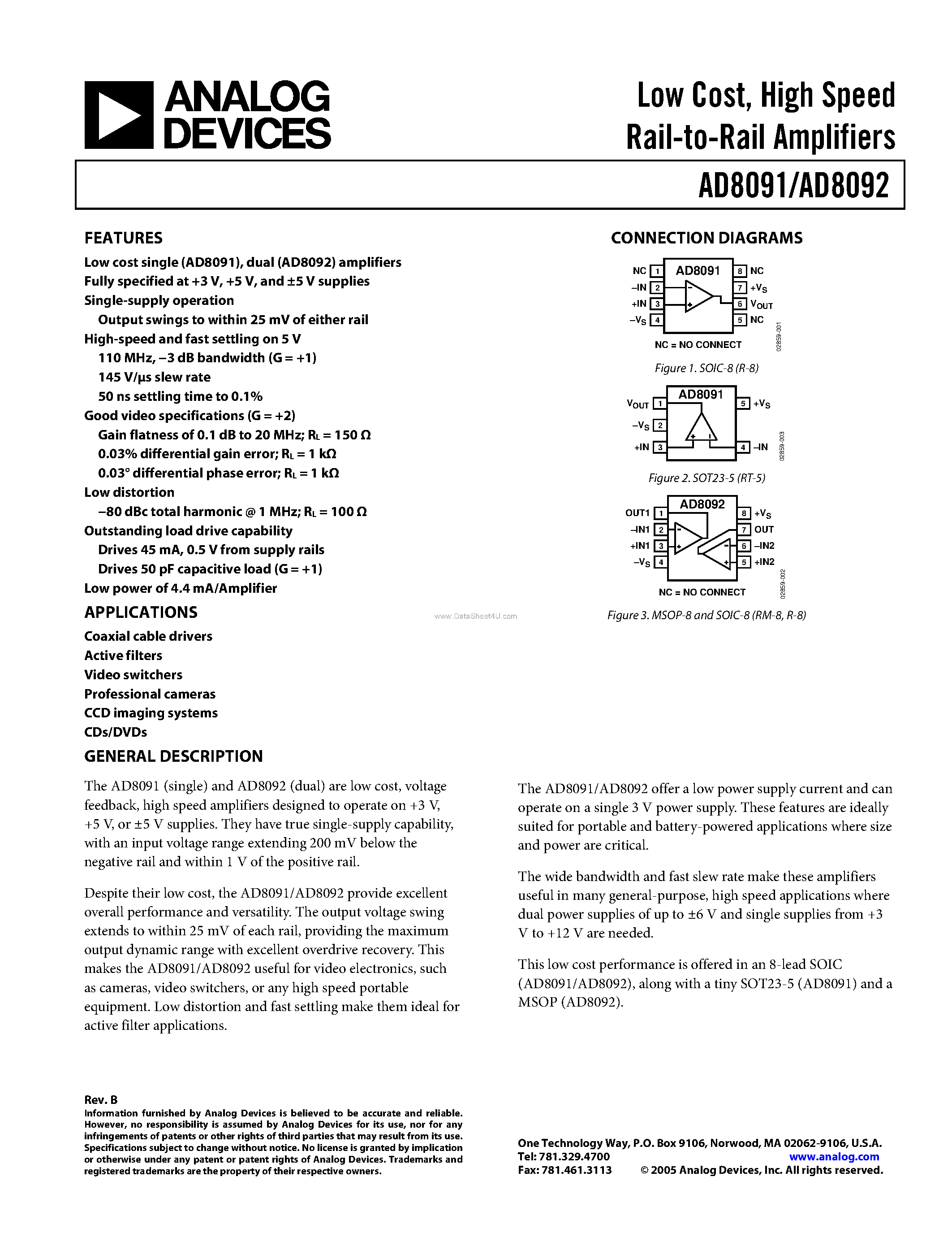 AD8092-(AD8091 / AD8092) High Speed Rail-to-Rail Amplifiers