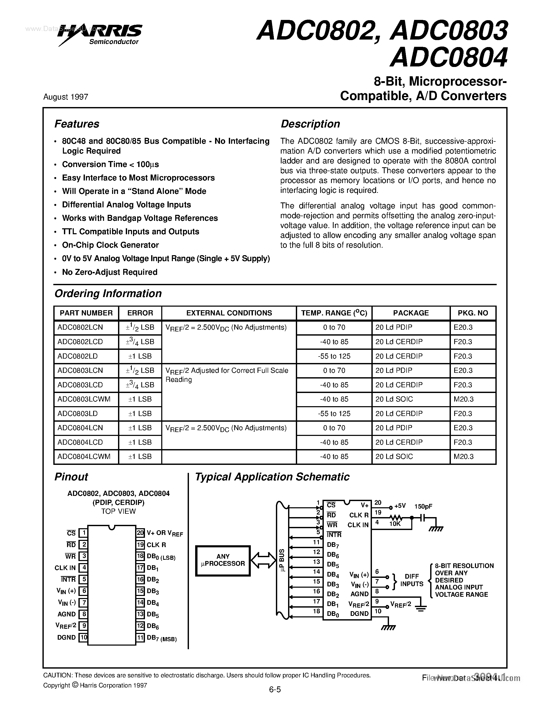 Даташиты (Datasheets ADC-0802) электронных компонентов