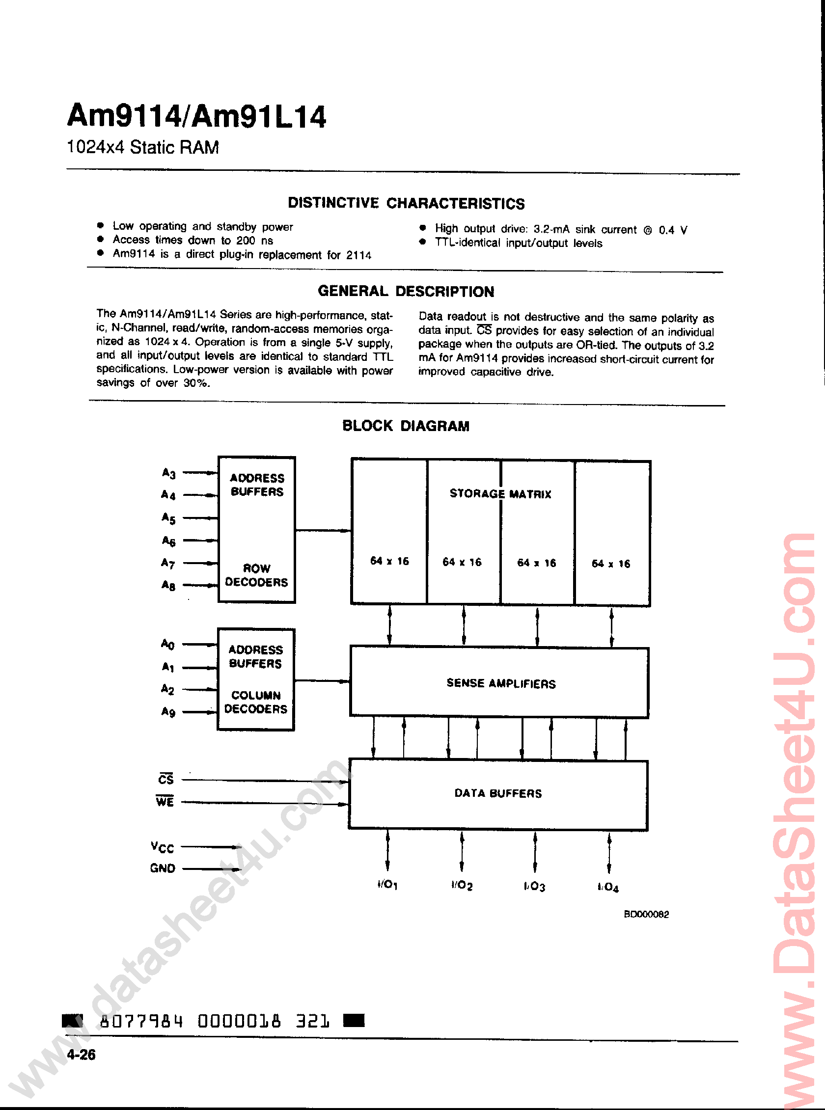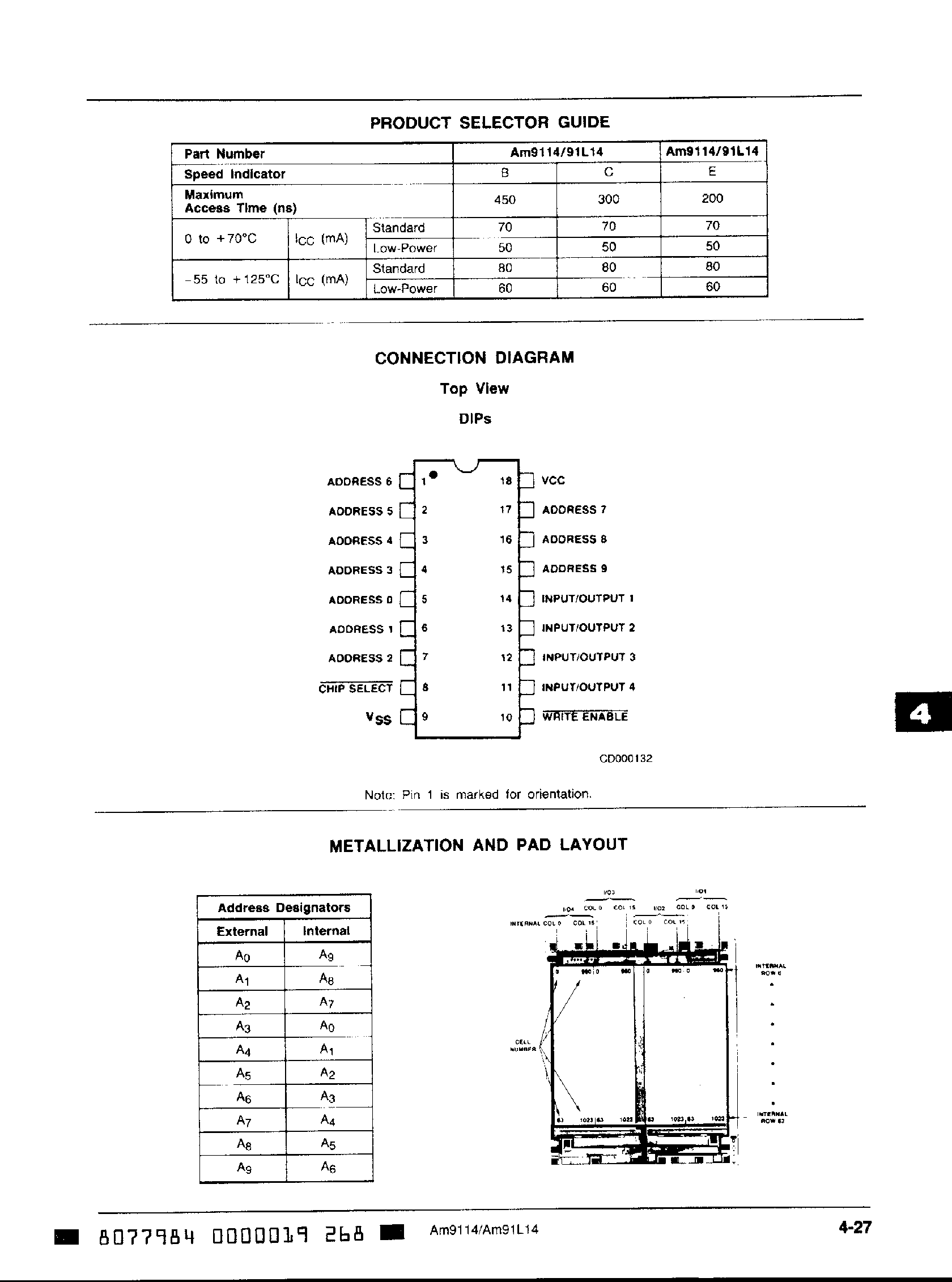AM9114-(AM91L14 / AM9114) 1024 x 4 SRAM