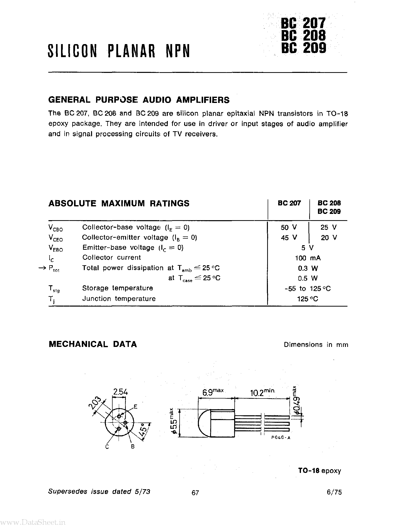 BC207-(BC207 - BC209) Silicon Planar NPN