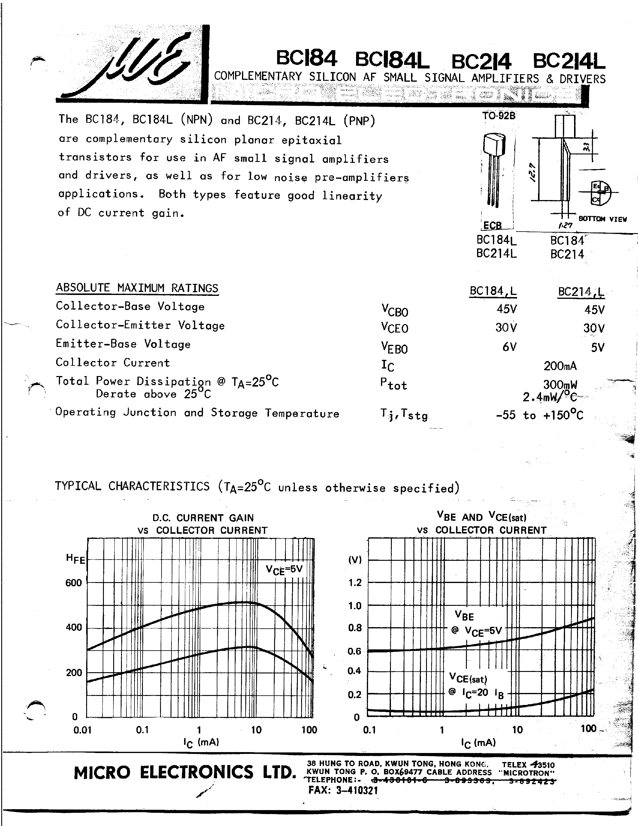 BC2I4L-COMPLEMENTARY SILICON AF SMALL SIGNAL AMPLIFIERS & DRIVERS