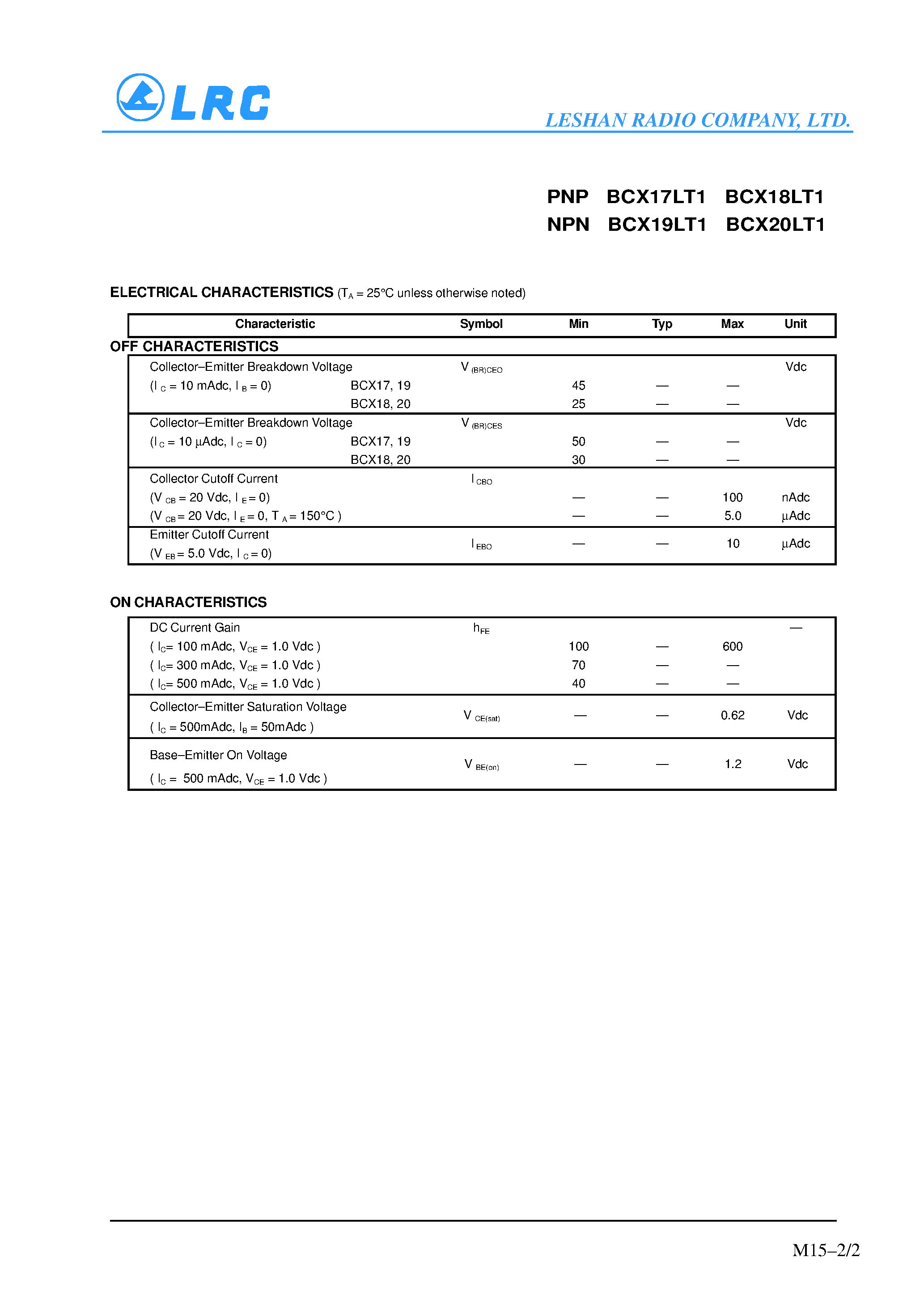 Даташиты (Datasheets BCX17LT1) электронных компонентов