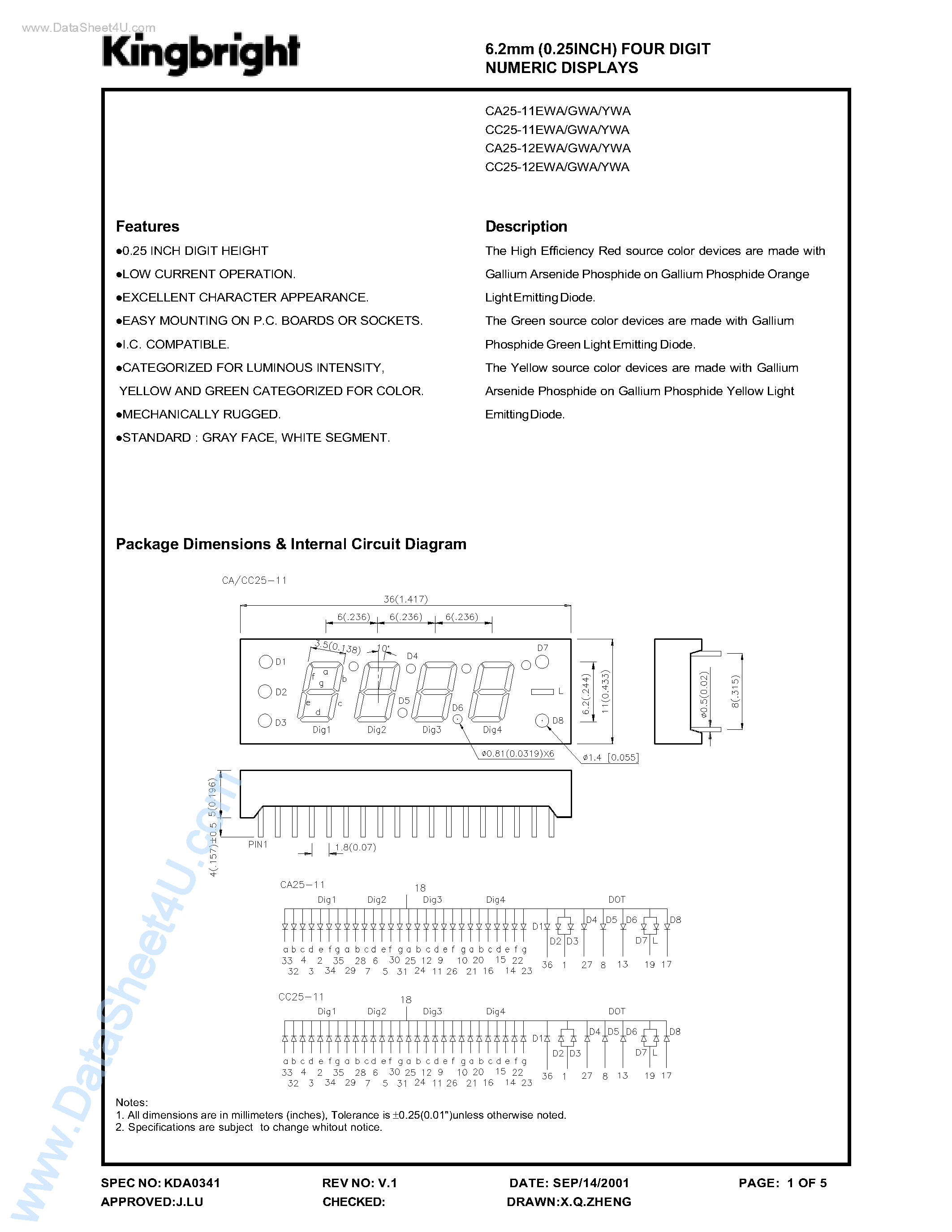 Даташиты (Datasheets CA25-11xxx) электронных компонентов