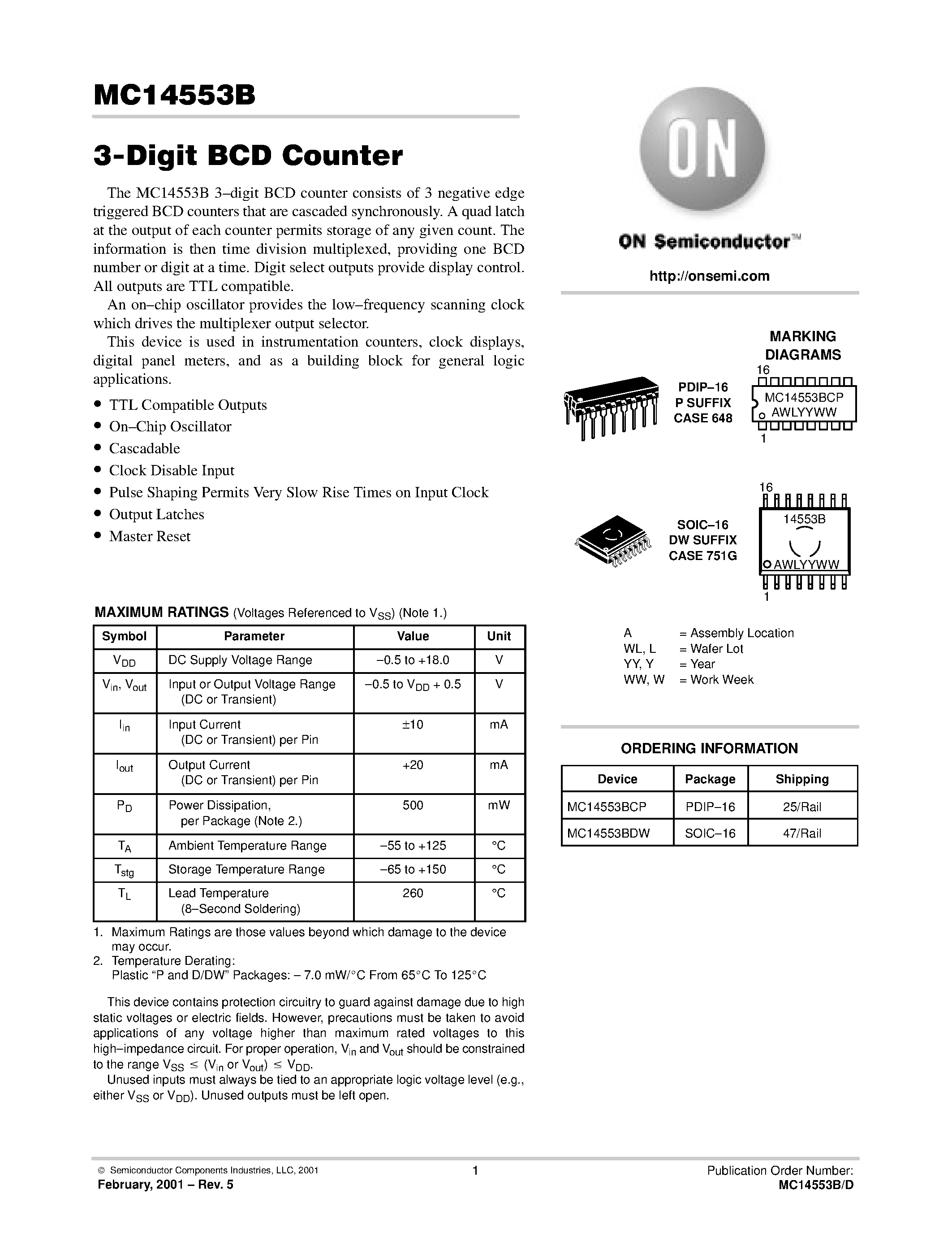 CD4553-(MC14553B) 3 Digit BCD Counter