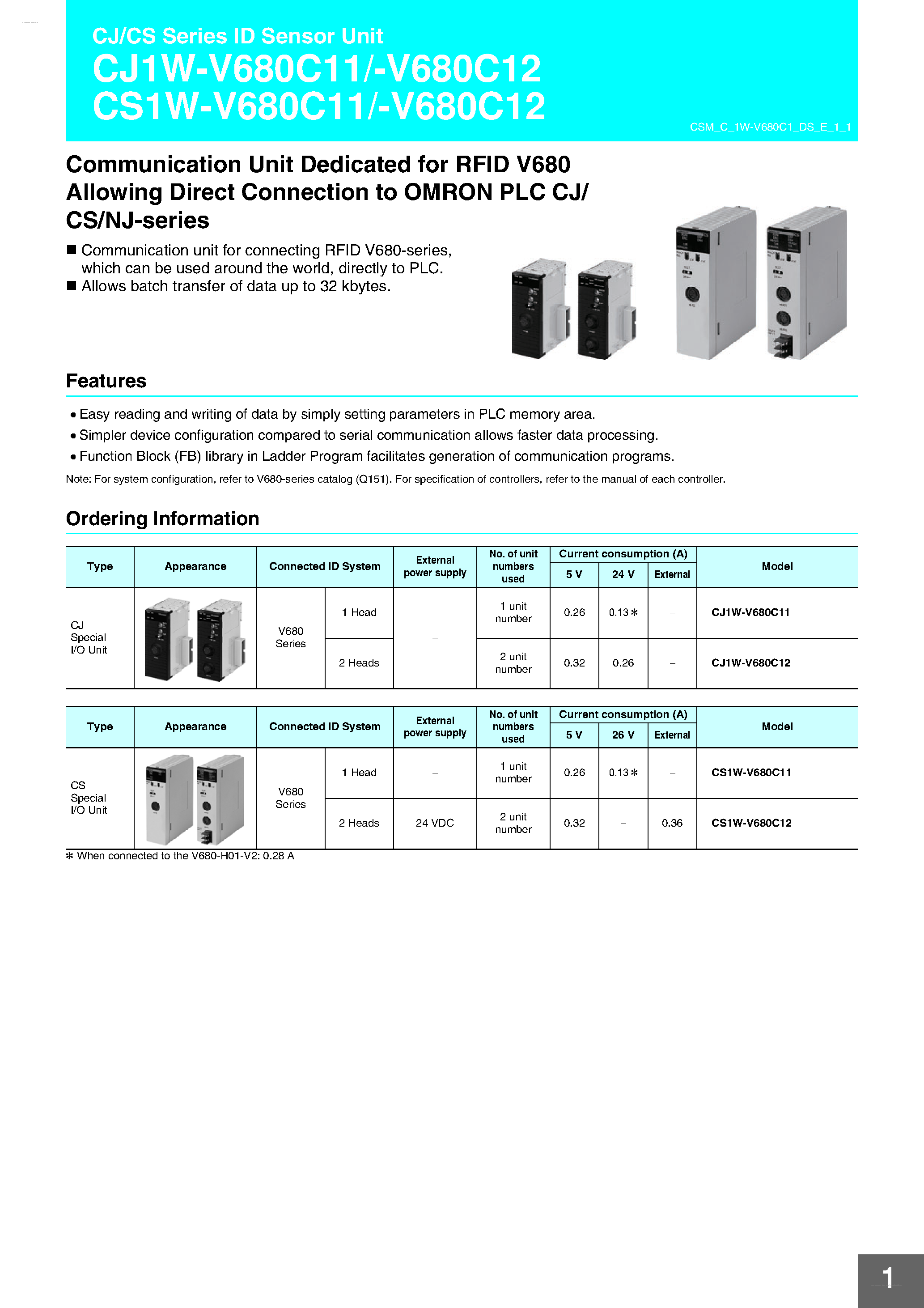 CS1W-V680C11-(CS1W-V680C11 / CS1W-V680C12) CJ/CS Series ID Sensor Unit