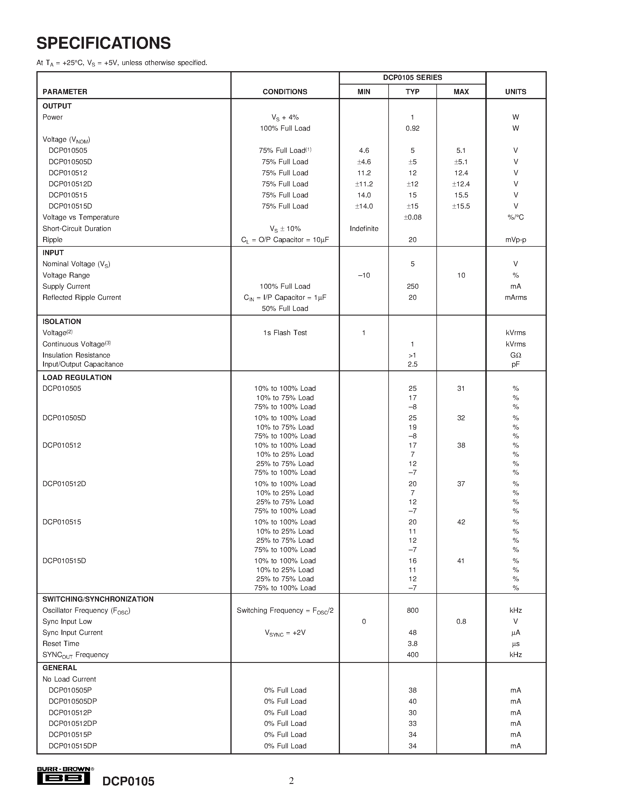 Даташиты (Datasheets DCP010512P-U) электронных компонентов